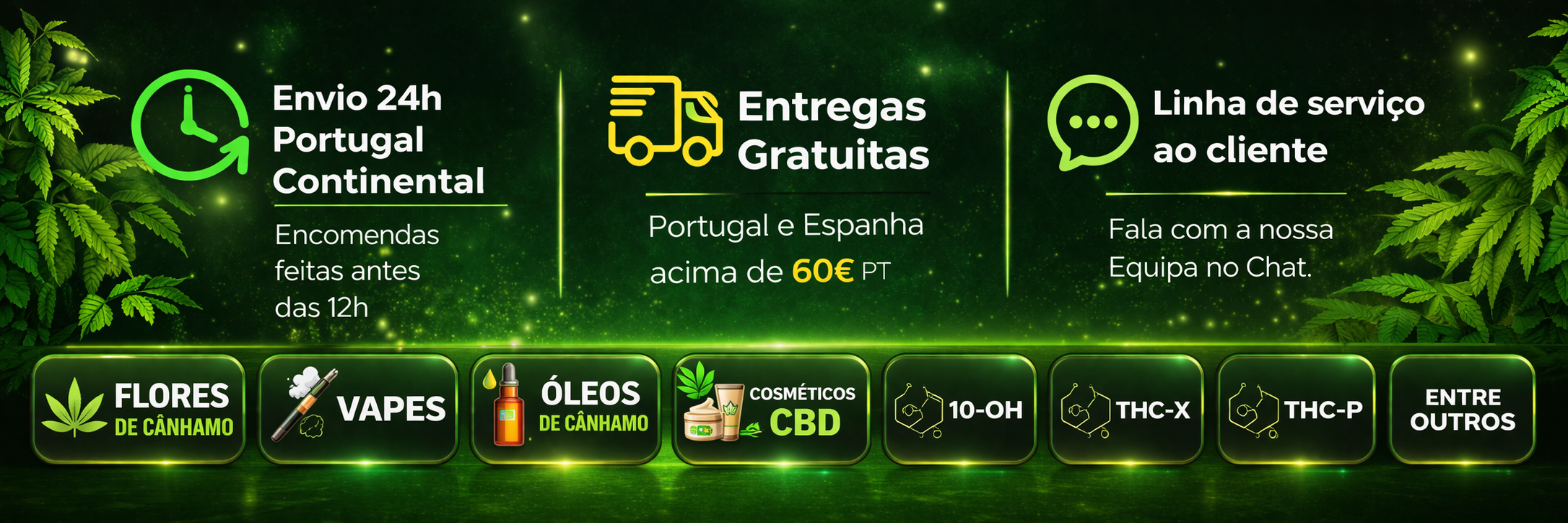As nossas flores CBD destacam-se pela sua aparência premium, ricas em tricomas e com perfis aromáticos únicos — perfeitas para quem valoriza qualidade e consistência. Já as nossas gomas CBD oferecem uma forma prática, discreta e saborosa de aproveitar todos os benefícios, com sabores incríveis e uma experiência suave e agradável.
